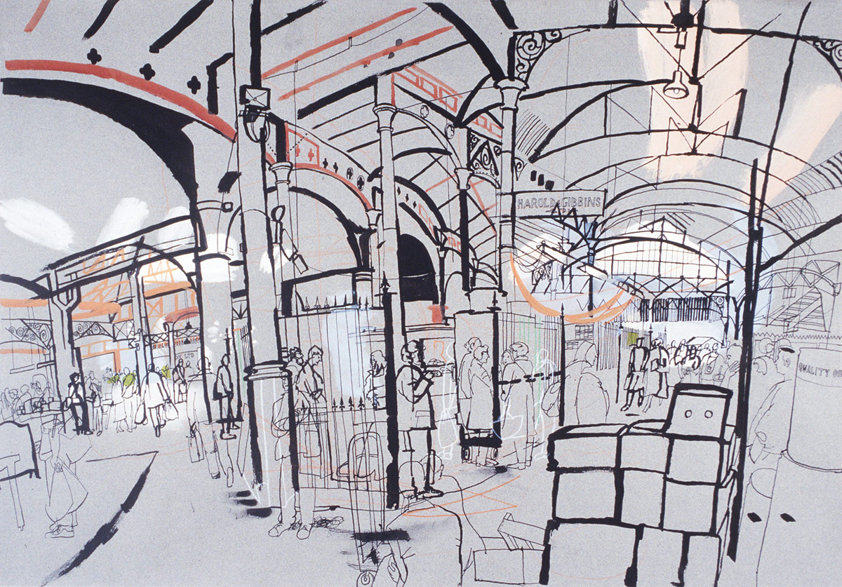 lucinda rogers drawing ink watercolour prints for sale borough market london food life people