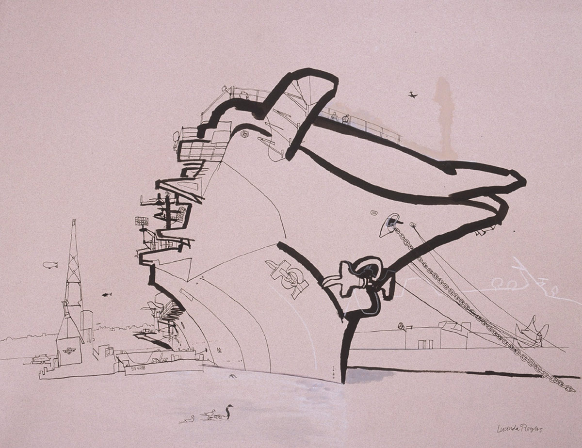 lucinda rogers ink drawing new york city USS Intrepid pier 66 aircraft carrier geese